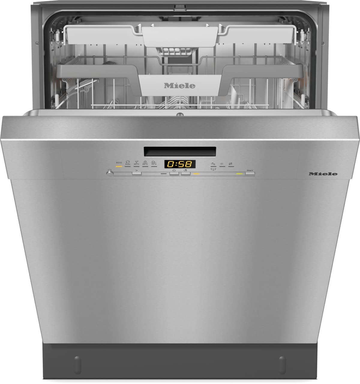 Mieles diskmaskiner har plats för upp till 14 standardkuvert. Förutom att vi följer gällande normer ser vi även till att dina behov och önskemål uppfylls så att allt diskgods inte bara kan placeras optimalt, utan även blir rent och torrt.