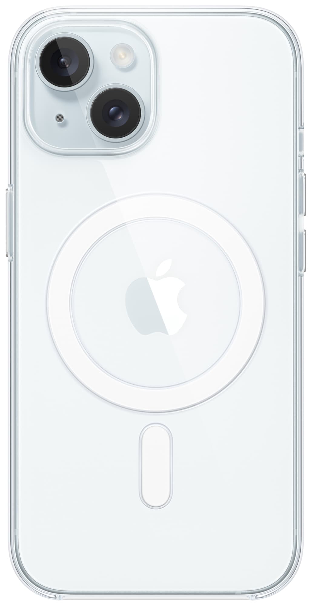 iPhone 15 genomskinligt fodral med MagSafe är ett lätt fodral tillverkat av transparent polykarbonat och andra flexibla material. Den reptåliga beläggningen och andra material är optimerade för att förhindra gulning.Läs mer om produkten