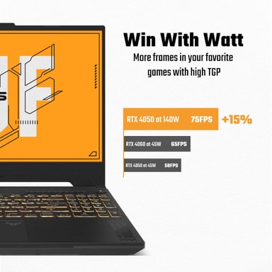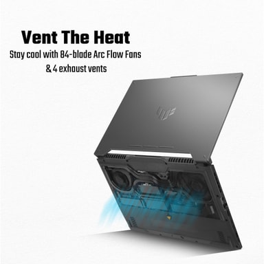 Upplevultimatspelande med TUF Gaming A15. Utrustad med 84-bladiga Arc Flow Fans™ ocheninnovativ design somökartrycketochminskarturbulensen, håller den sig sval under intensivbelastning. Med upp till fyrautblåsventileroch fem kylrörgaranteras optimal kylningutan extra oväsen. Perfekt för de mestkrävandespelen!