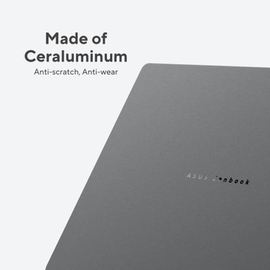 Uppnå mer med en lättare design! Zenbook A14 väger under ett kilo och drivs av Snapdragon® X Series-processorn, som optimerar Copilot+ för flera dagars batteritid. Den minimalistiska designen i ton-i-ton-färger och naturinspirerade material utstrålar elegans. Locket, tangentbordsramen och basen är tillverkat av vårt fantastiska material Ceraluminum som är slitage-, rep- och fläckfritt.
