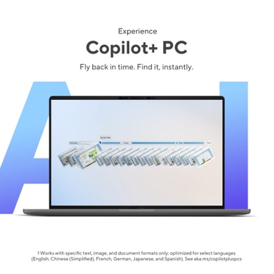 Copilot+ PC Förbättra din produktivitet med hjälp av Copilot+ PC. Eftersom AI är sömlöst integrerat i operativsystemet, låter dessa enheter dig utnyttja dess kraft i vardagliga uppgifter. Med Recall kan du söka igenom dina filer som aldrig förr, medan Cocreator hjälper dig med att skapa bilder från enkla skisser. Dessutom hjälper Live Captions dig att förstå, tack vare dess förmåga att skapa live engelska undertexter från över 40 språk.