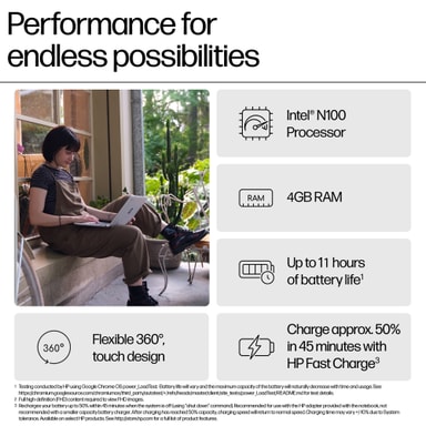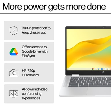 HP Chromebook x360 14 N100/4/128/IPS 14-tums bärbar dator har emn Intel Core® i3 N305-processor, 14-tums IPS-skärm, lång batteritid, HD-kamera, snabbt Wi-Fi 6 och Chrome OS för snabba starttider och säkerhet.Läs mer om produkten