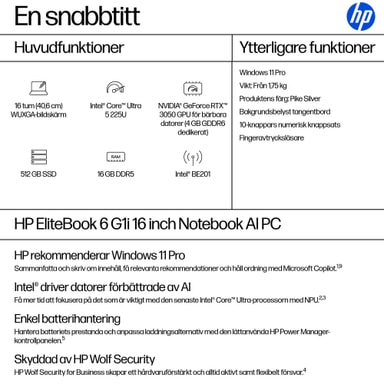 HP Elite Laptop-datorer erbjuder kraftfulla, säkra och managerbara lösningar för krävande arbetsuppgifter i snygg design som är lätta att bära med sig.Läs mer om produkten