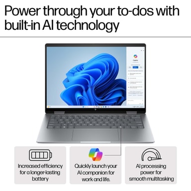 AI-förmåga Starta snabbt din AI-följeslagare med den integrerade Copilot-knappen för att hjälpa dig med uppgifter i privat- och arbetslivet.