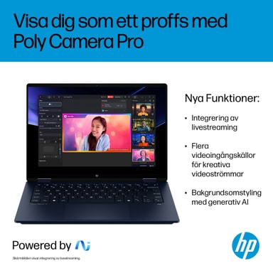Ta med dig de senaste anslutningsfunktionerna när du reser. Anslut sömlöst med Wi-Fi 6E, medan AI-brusreduceringsfunktioner gör att du blir hörd var du än är. Poly Camera Pro-appens funktioner säkerställer smidig integration med livestreaming och möjligheten att streama och presentera från flera videokällor.