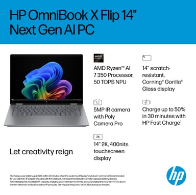 HP OmniBook X Flip AI 7-350/32/512/OLED 14" bärbar dator levererar kraftfull prestanda med AMD Ryzen™ AI 7 samt imponerande bildkvalitet på 2K IPS-skärmen. Höj din prestanda och håll dig produktiv under långa arbetspass.Läs mer om produkten