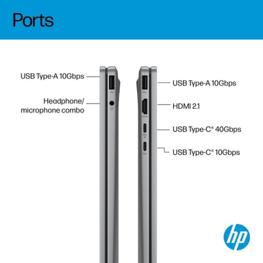 Anslutningar - 2x USB-A 3.2 Gen 2-port - 1x USB-C 3.2 Gen 2-port - Supersnabb Wi-Fi 6 (802.11ax), Bluetooth 5.3 - HDMI-anslutning - 1 hörlurs-/mikrofonkombination