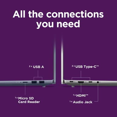 Anslutningsmöjligheter - 2x USB-A 3.2 Gen 1 - 2x USB-C 3.2 Gen 1 - Wi-Fi 7 (802.11be), Bluetooth 5.3 - SD-kortläsare