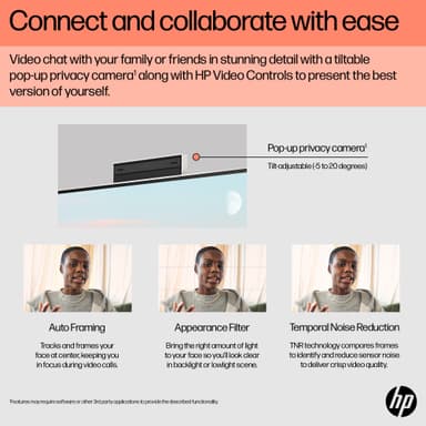 Fler funktioner: - Integrerad webbkamera med Full HD (1080p) videoupplösning - Windows 11 Home 64-bitars - Högtalare - Trådlöst tangentbord och mus ingår