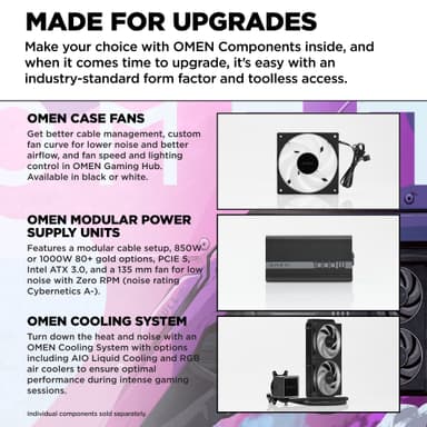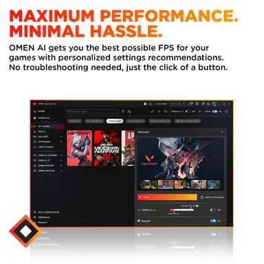 Anpassningsbara funktioner Anpassa din spelupplevelse med OMEN 16L:s anpassningsbara alternativ. Justera inställningar för optimal prestanda eller personifiera utseendet på din dator för att matcha din stil. Denna flexibilitet säkerställer att din spelinstallation är skräddarsydd efter dina preferenser och erbjuder en unik och personlig upplevelse.