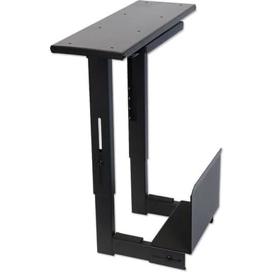 • Vridbar och utdragbar hållare, din dator bekvämt under skrivbordet och skyddar den mot damm och smuts, av pulverlackerad rostfritt stål