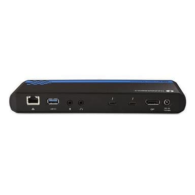 Cable Matters Intel Certified Thunderbolt 3 Dock 1 to 9 omvandlar en Thunderbolt 3 port i din dator till 1x Displayport 1.2, 1x Thunderbolt 3, 2x 3.5mm AUX, 2x USB-A 3.0, 1x USB-C 3.1 och 1x RJ45 Lan. Det går att ansluta två 4k60hz skärmar till dockningsstationen (En via Displayport och en via Thunderbolt) och det går att både utvidga och spegla datorns skrivbord. USB 3.0 portarna har stöd för dataöveröfringshastigheter upp till 5 Gbps, USB 3.1 porten har stöd för upp till 10 Gbps och Thunderbolt 3 porten har stöd för upp till 40 Gbps. Det går att ansluta dockningsstationen till Gigabit internet via RJ45 Lan porten och det går också att ansluta trådade hörlurar, mikrfoner eller dylikt via 3.5mm AUX portarna. Dockningsstationen kräver inga drivrutiner och drivas av medföljande nätdel.Specifikationer: