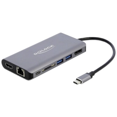 Delock USB-C®-dockningsstation Passar till följande märken: univerzálnyAnslutning A (eller ingångar): HDMI hona, LAN (10/100/1000 Mbit/s), USB-C®, SD, USB 3.2 Gen 2 (USB 3.0), USB 3.2 Gen 2 (USB 3.0), DisplayPort hona · Anslutning B (ellerLäs mer om produkten