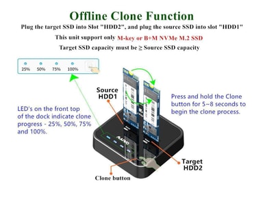 Offline cloning innebär att K3016P behöver inte anslutas till en dator för att användas. Anslut bara strömmen och tryck på knappen så kan du säkerhetskopiera din viktiga data från disk 1 till disk 2. Det går även att kopiera från HDD i PC till Disk1 eller Disk2. Dockningsstationen stödjer kopiering av både datadiskar och systemdiskar. Upp till 4TB HDD. USB 3.2 Gen2 stödjer upp till 10 Gbps. Överför 1 GB-fil på 1 sekund.