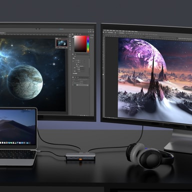 Dubbla 4K-skärmar – Anslut både HDMI och DisplayPort samtidigt med upplösning upp till 4K@60Hz för en imponerande visuell upplevelse.