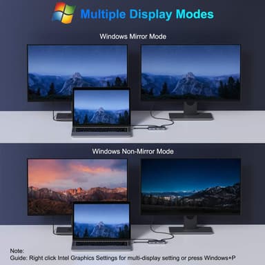 SpecifikationerModell: 1 till 4 USB-C DockningsstationPortar:2 × HDMI (stödjer upp till 4K)1 × USB-C PD (max 100W)1 × USB-A 3.0 (5 Gbps)Ingång: 1 × USB-CDC/DC-effektivitet: upp till 96%Material: AluminiumFärgalternativ: Svart / Space GreyKompatibilitet: USB-C-enheter inklusive MacBook Pro/Air, Windows laptops, iPad Pro 2025, Dell XPS 13/15, Surface Book 2, Asus ZenBook, Lenovo Yoga-serien, Samsung Galaxy S8/S9/S10, Chromecast med Google TV, Pixelbook, Chromebook och flerPlug-and-play: Ingen installation krävs, kompatibel med Windows, macOS, ChromeOSStorlek: 58 × 51 × 11 mm (L×B×H)Vikt: 42 gSkärmupplösningar och uppdateringsfrekvensWindows:DP1.2 (utan DSC) → 4K@30Hz + [email protected] (med DSC) → 4K@60Hz + [email protected] (utan DSC) → 4K@60Hz + 4K@30HzMacOS:4K@60Hz + 4K@60HzObservera att MacOS ej stödjer MST vilket begränsar tillgång till utvidgat/extended-läge på skärmarna. Endast samma bild visas på båda.FunktionerDubbla HDMI: Anslut två externa skärmar för en kristallklar och smidig multi-display-upplevelse.USB-C PD 100W: Snabbladdning med upp till 50% laddning på 30 minuter.USB-A 3.0 med 5 Gbps: Snabb filöverföring från externa hårddiskar, flashenheter eller andra tillbehör.Kompakt och bärbar design: Lätt och robust aluminiumkonstruktion, perfekt för både hemkontor och arbete på resande fot.Plug-and-play: Enkel att använda utan drivrutiner eller komplicerad installation.Innehåll1 × NÖRDIC 1 till 4 USB-C Dockningsstation