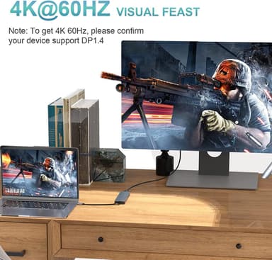 HDMI porten har stöd för upplösningar upp till 4K60hz och det går att spegla och utvidga den externa skärmen på både MacOS och Windows. Ena USB-C porten har stöd för power delivery upp till 100W. Den andra USB-C porten och USB-A portarna har stöd för dataöverföring upp till 5Gbps.