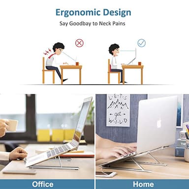 Ergonomisk design: Få en bekvämare hållning när du arbetar, studerar eller tittar på en film på datorn. Laptopstället kan justeras i olika vinklar så att du enkelt kan anpassa det för hur du vill ha det.