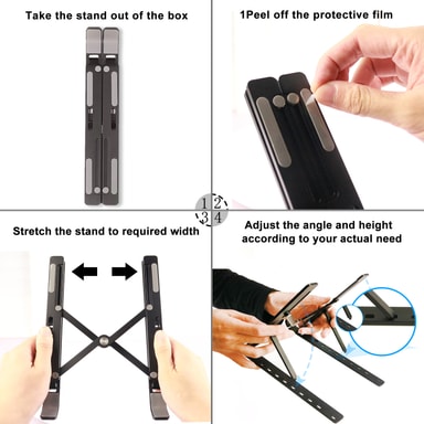 Lätt och ihopfällbart: Portabelt och smidigt laptopställ för din bärbara dator. Får enkelt plats i laptopväskan då det kan fällas ihop till en "pinne" i minimal storlek.