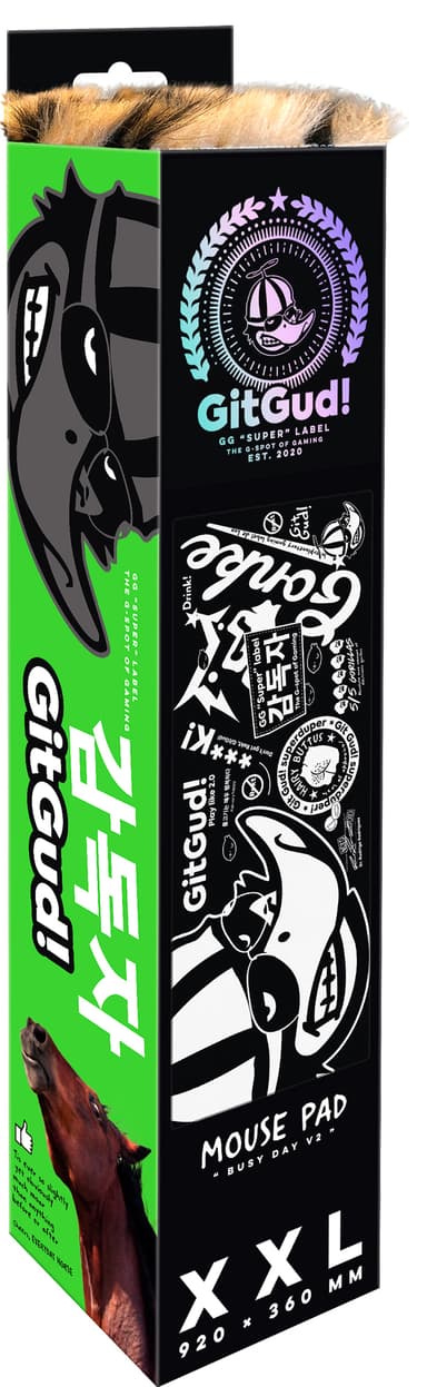 Spela är med rätt stöd för tangentbord och mus med XXL GitGud! Mousepad Busry Day V2 musmatta. Den har en ultravävd yta samt sydda kanter och halkfri botten.Läs mer om produkten
