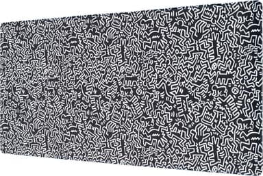 Uppgradera ditt spelupplägg med Grupo Eric Keith Haring-musmattan. Mäter 80 x 35 cm, dess vattentäta yta motstår spill, förstärkta kanter säkerställer hållbarhet och neopren-gummiblandningen ger en slät, halkfri bas för exakt kontroll.Läs mer om produkten