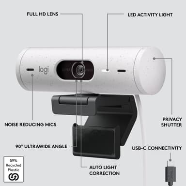 Logitech Brio 500 webbkamera gör dina möten mer organiska tack vare funktioner som automatisk inramning, som alltid håller dig centrerad, Show Mode för bättre samarbete och Auto Light Correction som gör att du ser bra ut i sämre ljus.Läs mer om produkten