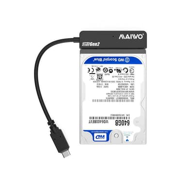 Maiwo K104AG2 10Gbps USB3.1 Gen2 till 2,5" HDD/SSD 2TB Upp till 12,5mm SATA III adapter med 10cm USB C kabelLäs mer om produkten