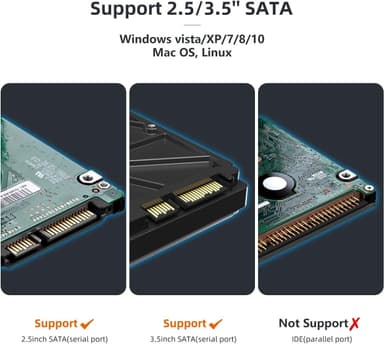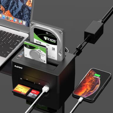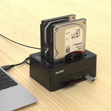 Maiwo K3082CR Dockningsstationen har stöd för alla typer av 2,5/3,5" SATAI/II/III HDD/SSD upp till 14TB och stödjer SATAIII 6Gbps. Med kloning funktion 1:1 (även utan PC) Strömkabel och USB C kabel ingår