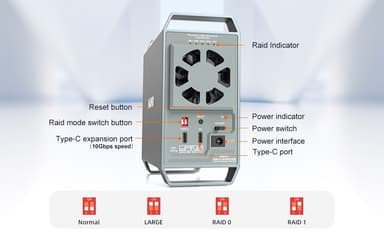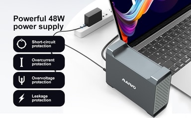 Maiwo K35282C är en extern lagringskabinett som låter dig ansluta två 3.5"" SATA I/II/III HDD till din dator via USB-C 3.1. Kabinetten har stöd för dataöverföringshastigheter upp till 10 Gbps och är bakåtkompatibel med tidigare USB versioner. Kabinetten kommer även med stöd för RAID 0/1/Large/Normal för att minska risken för dataförlust (genom redundans), öka åtkomsthastighet och/eller att få en stor enhet av båda hårddiskar. Kabinetten drivs av medföljande 48W nätdel som har stöd för överström-, överspänning- och kortslutningsskydd. Den har temperaturkontroll som aktiverar kylsystemet automatiskt när den når 48°C och kabinetten startar och stängs av tillsammans med datorn. Inga drivrutiner krävs, plug & play.Specifikationer: