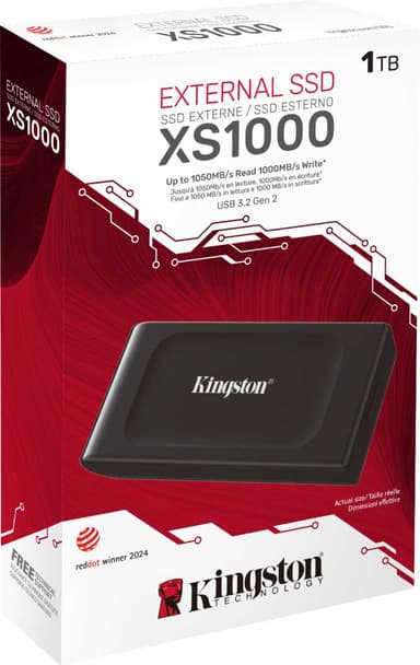 Kapaciteten på 1 TB på Kingston XS1000 bärbar SSD låter dig ha all din viktiga data med dig vart du än går. Och de snabba överföringshastigheterna på upp till 1 050 MB/s betyder att du kan flytta runt din data på några sekunder.Läs mer om produkten