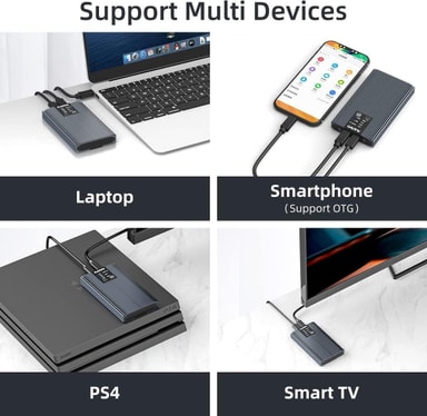 Kabinetten kan användas direkt ur lådan, ingen installation eller drivrutiner krävs. Med en lätt och kompakt design är kabinetten enkel att ta med sig vart du än ska. Drivs av medföljande nätadapter 5V 3A.