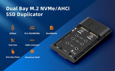 Maiwo K2022P extern kabinett låter dig både läsa och skriva till två externa M.2 NVME SSD samtidigt med en överföringshastighet på upp till 20 Gbps tack vare USB3.2 GEN2x2-gränssnittet. Kabinetten har också stöd för offline cloning vilket låter dig överföra och säkerhetskopiera din data utan att att använda en dator.