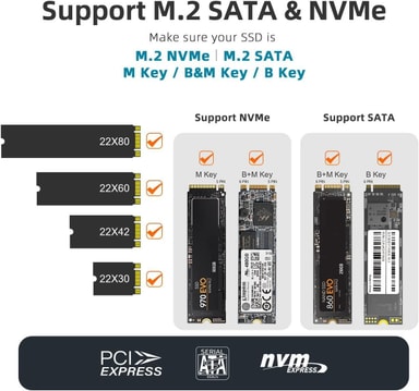 Maiwo M.2 NVMe och SATA SSD Aluminium extern kabinett med stöd för B-Key, M-Key och B+M-Key och storlek 2280, 2260, 2242 och 2230.