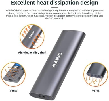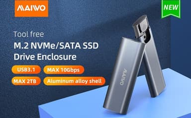 Maiwo K1689 är en unik extern kabinett som har stöd för både M2. SATA och M2. NVMe SSD. Med USB3.2 Gen2 gränssnitt kan man överföra data upp till 10Gbps (NVMe) och 6Gbps (SATA). Max SSD 2TBSpecifikationer: