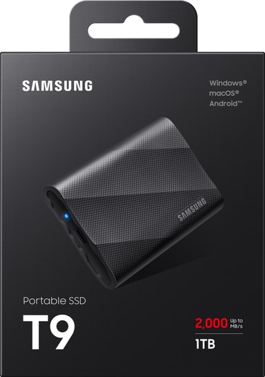 Samsung T9 1TB extern SSD har kompakta mått som gör att du kan ta med den överallt på dina äventyr och njuta av hastigheter på upp till 2000mb/s, fallskydd på upp till 3 meter och kompatibilitet med Windows, macOS, Android med mera.Läs mer om produkten