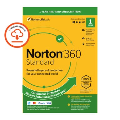 NORTON 360 STANDARD ND 10GB ND 1 USER 1 DEVICE - PC Windows,Mac OSX,iO