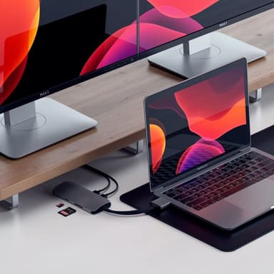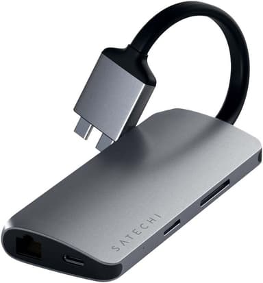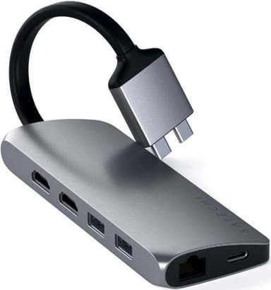 Satechi USB-C Dual Multimedia USB-hubb har Dual 4K-videoutgång, Gigabit Ethernet och 60W Power Delivery-laddning.Läs mer om produkten
