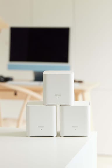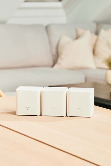 Med Jensen Omni Lite WF6/AX1500 mesh-kit (3-pack) kan du dra nytta av ett stabilt dualband WiFi 6 mesh-nätverk. Omni Lite-satsen innehåller tre noder för upp till 300 m2 täckning med 1000 Mbps WAN-hastighet och kan styras från en mobilapp.Läs mer om produkten