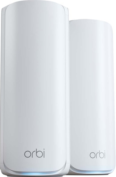 Netgear Orbi 770 RBE772 Wi-Fi 7 Mesh-router (2-pack) ger upp till 11 Gbps driftshastighet, tri-band mesh-täckning för upp till 360 m², stöder 100 enheter och inkluderar en 2,5 Gig internetport för sömlös anslutning till hela hemmet.Läs mer om produkten