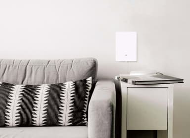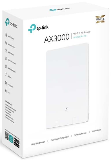 Archer Air R5 är kompakt med måtten 210 × 148 × 10,8 mm – tunnare än ett vanligt vägguttag. Den helvita ytan, rena linjerna och rundade hörnen skapar ett elegant utseende som smälter in i moderna hem.