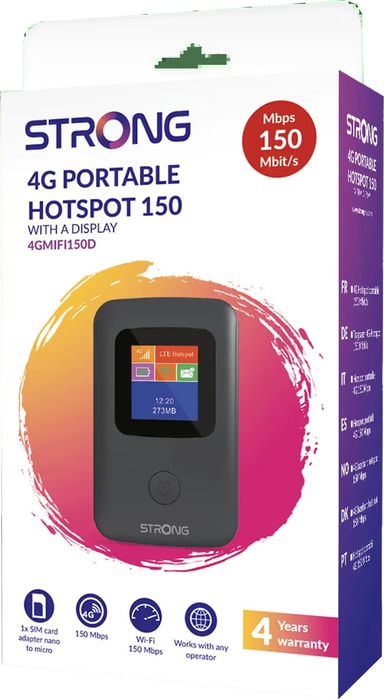 Njut av snabb och pålitlig Wi-Fi-anslutning när du är på språng med Strong 4G LTE mobilt bredband. Sätt bara i valfritt SIM-kort med ett dataabonnemang och tillhandahåll upp till 10 enheter med internethastigheter på upp till 150 Mbps.Läs mer om produkten