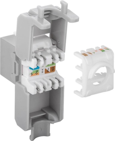 RJ45-uttag för installation i Keystone-patchpaneler, nätverksuttag och höljen