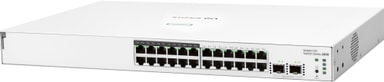 HPE Networking Instant On 1830 (24G CL4 PoE 2p 195W) nätverksswitch erbjuder smart hanterad Layer 2 Ethernet med 24 portar, 12 CL4 PoE, 2 SFP, inbyggda säkerhetsfunktioner och en fläktlös design, perfekt för småföretag.Läs mer om produkten