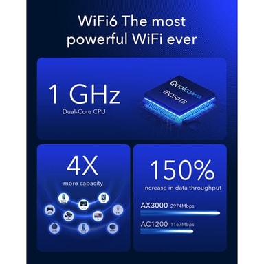 Full 160 Mhz kanalbredd möjliggör en topphastighet på 2402 Mbps på 5 GHz-bandet, bäst för fördröjningsfritt spelande och livestreaming i felfri kvalitet. Långtgående 2,4 GHz-signal täcker ett vidsträckt område, så att du kan njuta av nätverket på bakgården. OFDMA och kraftfull CPU möjliggör 4× kapacitet för fler enheter.