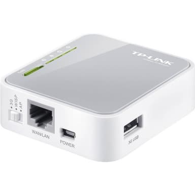 TP-LINK TL-MR3020 WiFi Router 2.4 GHz 150 MBit/sKompatibel med över 120 UMTS/HSPA/EVDO-USB-modem, testade ute på fältet · Minidesign, perfekt att ta med sig · Wireless-N-hastighet upp till 150 Mbit/s · Enkel WLAN-säkerhetskryptering med enLäs mer om produkten