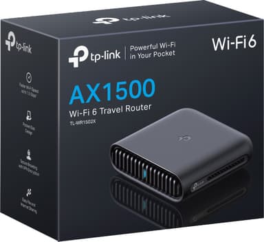 TP-Link WR1502X WiFi 6-router erbjuder snabba hastigheter upp till 1500 Mb/s, resevänlig design som får plats i fickan, 2x Gigabit LAN-portar, USB-C-strömförsörjning och en säker VPN-anslutning.Läs mer om produkten