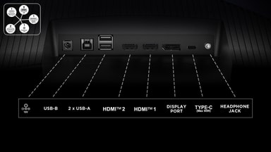 - 1 x DisplayPort, 2 x HDMI 2.1, USB-C