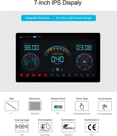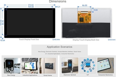 Denna produkt är en högupplöst 7-tums IPS LCD-skärm, designad för enkel integrering i tekniska och inbäddade projekt. Den har en tunn COF-struktur och ett multifunktionellt 40-pin-gränssnitt för smidig kommunikation via en enda FPC-kabel. Skärmen stödjer HDMI-video och USB-touch och är kompatibel med Raspberry Pi (alla versioner), Jetson Nano och Windows-datorer.Specifikationer
