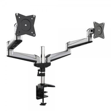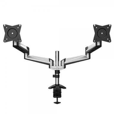Ett kraftfullt gasdrivet monitorfäste för två monitorer där varje arm klarar en vikt upp till 8 kg var. Passar VESA utrustade monitorer upp till 32"". Installationen är enkel och kan slutföras på under 5 minuter. Lutningsjusteringen +90°/-85° innebär att du kan vinkla skärmen framåt eller bakåt . Den är helt stabil i alla vinklar. Designad för maximal styrka och stabilitet. Huvudramen är pressgjuten av förstärkt högkvalitativt aluminium. De vridbara beslagen av stål ger en följsam och stabil vridning. Alla rörliga delar är testade för att hålla flera år.