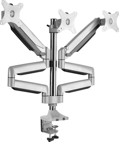 Essentials Premium Triple Monitor Gas Lift arm för bildskärm är en justerbar arm för enkel bildskärmsuppsättning i såväl professionell miljö som hemmavid - du får på ett superenkelt sätt perfekta betraktningsvinklar oavsett var du ställer skärmen.Läs mer om produkten